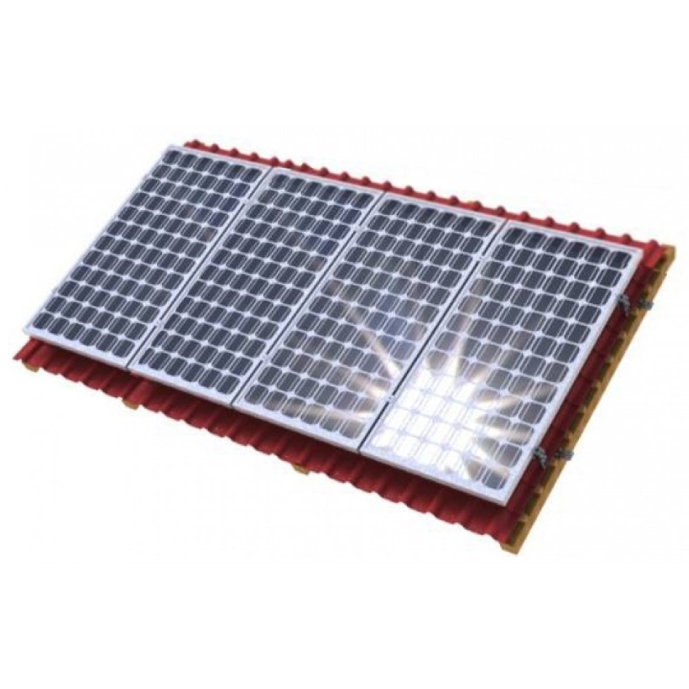 Данный комплект предназначен для монтажа солнечных батарей на плоской наклонной крыше (мягкая черепица), либо металлочерепице в один ряд.